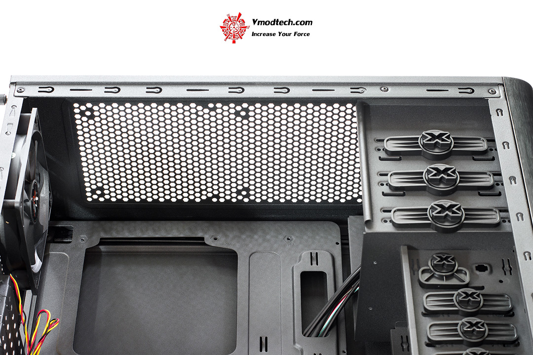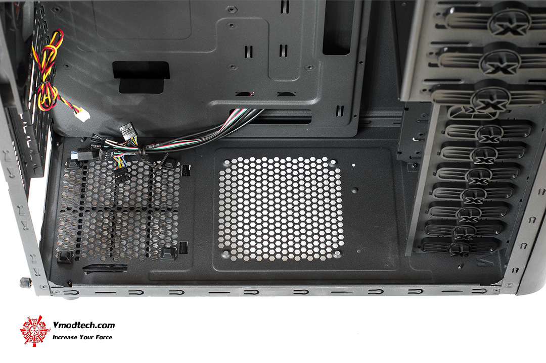 ดูด้านล่างภายในกันหน่อย นอกจากพื้นที่วาง PSU แล้ว ข้างๆสามารถเพิ่มพัดลม 120mm ได้ 1 ชิ้นครับ