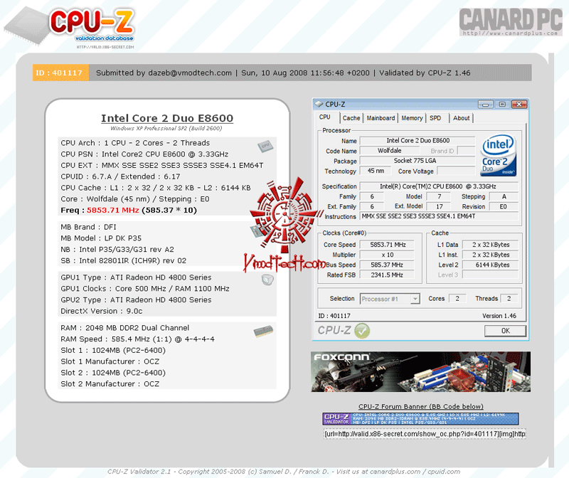 | MEMORY | OCZ Titanium VX2 PC8000 4-4-4 -15 2*1GB |