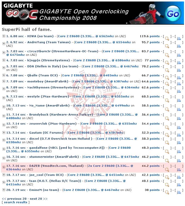 ไม่อยากจะเชื่อสายตา Vmodtech.com ของเราเข้ามาอยู่ในTOP20 ใน Super PI Hall of fame กะเค้าด้วย!!! (คลิกที่รูปเพื่อเข้าสู่หน้า Hall of Fame SuperPI ที่HWBOT.ORG)