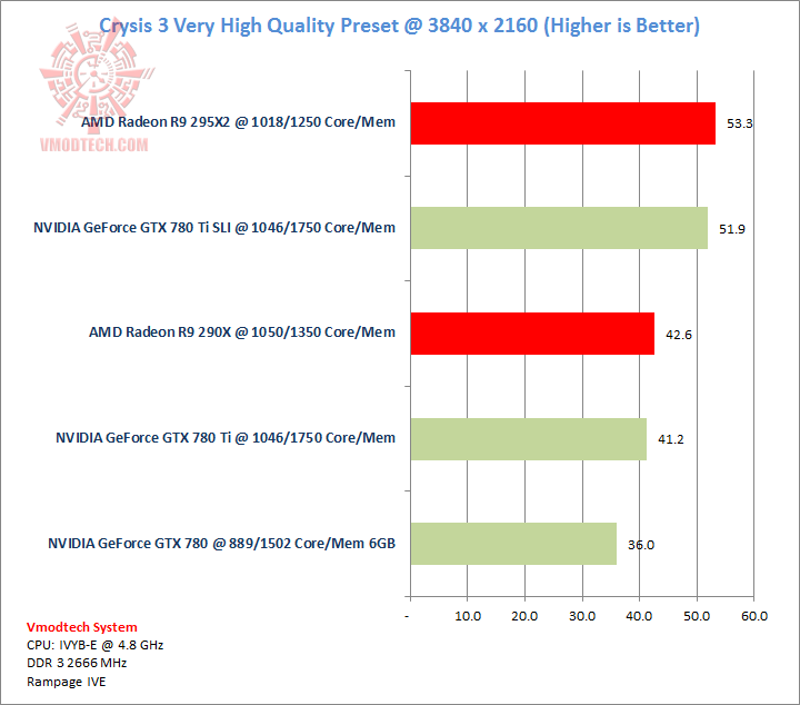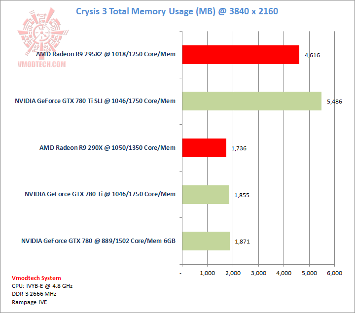 Crysis 3 ก็สบายๆครับ เกมส์เรียกแรมมาใช้งานตามความละเอียด และการ์ด Multi GPUs ทั้ง SLI และ Dual GPU นั้นยังปั่นเฟรมเรทได้เหลือเฟือบนความละเอียดนี้ และแรมบนการ์ดก็เหลือเฟือด้วย เกมส์นี้แดงเฉือนไปเส้นยาแดงครับ