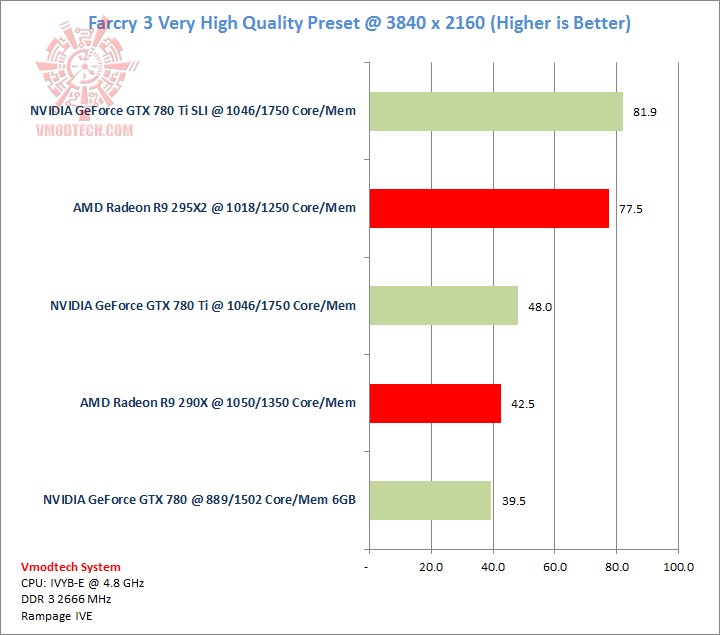 Farcry 3 นั้นอาจจะไม่โหดนักกับการ์ดระดับสูงของทั้งสองฝั่ง แต่จะเห็นได้ว่า 2 GPUs จากค่ายเขียวกินไปด้วยเฟรมเรทที่เล่นแล้วสบายตามาก