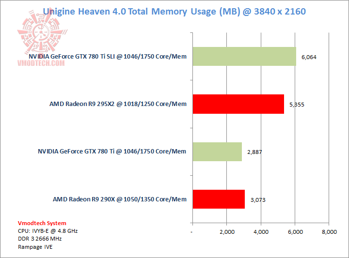 Watchdogs เกมส์ที่เพิ่งออกมาไม่นานมานี้ครับ ตัวเกมส์เรียกแรมการ์ดมาใช้งาน 6.3 กิ๊กบนการ์ด 295X2 และใกล้เคียงกันบนการ์ดคู่ GTX 780 Ti SLI แต่จะเห็นว่าพลังของค่ายเขียวนั้นสามารถรีดประสิทธิภาพและเฟรมเรทมากกว่านิดหน่อยครับ