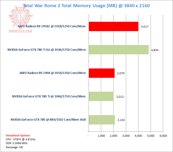 Rome2 สบายๆครับ ตัวเกมส์ต้องการประสิทธิภาพของ GPU มากกว่าจำนวนแรมบนการ์ดครับ จะเห็นได้ว่าตัวเกมส์นั้นเรียกใช้แรมมาแค่สูงสุดที่ 4.8 กิ๊ก โดยเฉลี่ยแต่ว่าการ์ดแดงเฉือนไปด้วยประสิทธิภาพ GPU ล้วนๆ
