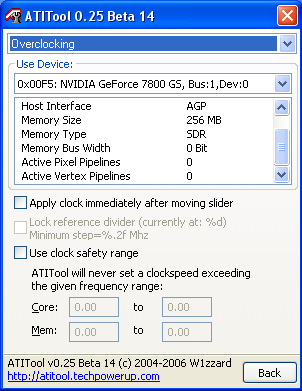 ***ทั้งโปรแกรม ATITools และ Riva Tuner ไม่สามารถบอกรายละเอียดของ 7800GS AGP ได้อย่างครบถ้วนครับ คาดว่าในเวอร์ชั่นใหม่ๆ ถึงสามารถบอกได้ครบ***