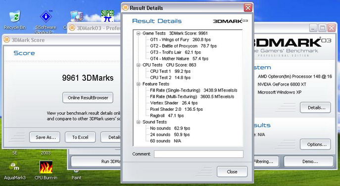 ตัวนี้คะแนนพุ่งขึ้นมาใช้ได้เลยครับ ถ้าVGAลากไม่ดีจริงที่ความเร็วCPUเท่าๆกัน คะแนนของAquamark3นี้ จะขึ้นน้อยมากๆครับ