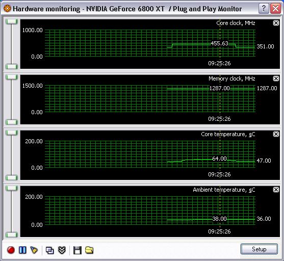 จากการทดลองโอเวอร์คล็อคด้วยRivaTuner การ์ดตัวนี้สามารถลากจากความเร็วเดิมที่350/100MHz ไปเสถียรที่ความเร็ว455/1290MHz โดยไม่เกิดArtifactsใดๆ แต่ระหว่างการทดสอบ ผมทำในห้องปรับอากาศ อุณหภูมิประมาณ25-26องศาเซลเซียส และไม่มีเคส เล่นแบบเปลือยๆ ทำให้ถ้านำไปใส่เคสและอยู่ในห้องอบๆ อาจทำงานที่ความเร็วนี้ไม่ได้นะครับ แต่ดูๆแล้วถ้าลดมาทำงานที่430/1250 น่าจะทำได้อย่างสบายๆนะครับ เพราะอุณภูมิขณะFullLoadของการ์ด ก็ไม่ได้สูงมากจนเกินไปนะครับ สุดๆขณะเทสต์3D ก็อยู่ที่ประมาณ64องศา ยังเย็นกว่าการ์ดรุ่นใหญ่ๆสมัยนี้หลายๆตัวครับ