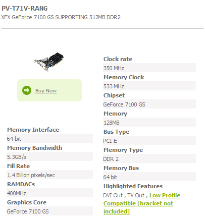 XFX GS7100GS Supporting 512 MB DDR 2 128 MB