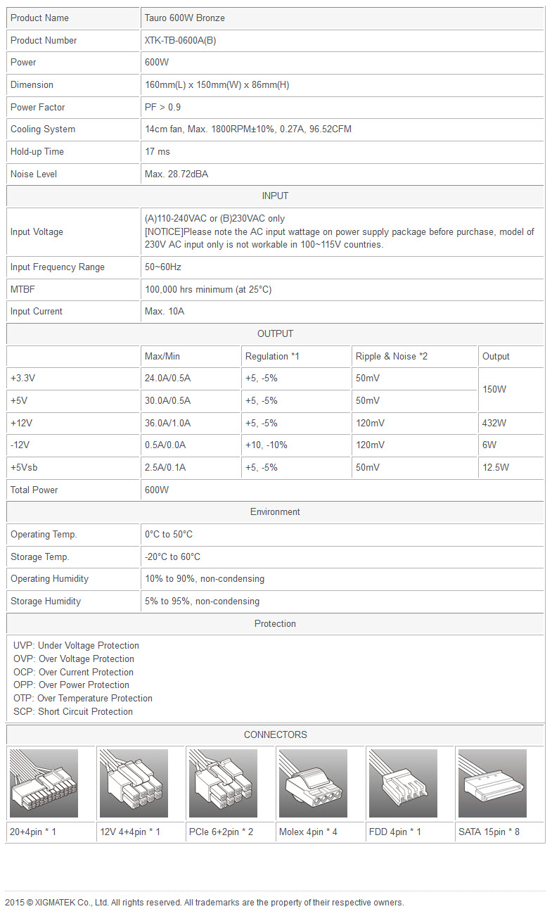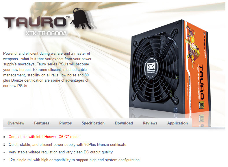 ……….สวัสดีวันนี้มี Power Supply จาก Xigmatek งามๆมาฝากกันอีกแล้วครับ วันนี้มาพบกับ Xigmatek Tauro Series “Tauro 600W Bronze” Power Supply 80Plus® Bronze เป็น Power Supply ขนาด 600 Watt การันตีด้วย 80 PLUS® Bronze ซึ่งกำลังไฟนั้นเป็นขนาดพอเหมาะพอเจาะกับเครื่องเล่นเกมส์แรงแบบกลางๆค่อนไปทางสูงเลยละครับ และต้องบอกว่าสามารถเอากราฟิกการ์ดรุ่นใหญ่ๆแบบใบเดียวอยู่แน่นอนครับ เพื่อไม่ให้เป็นการเสียเวลาไปลุยกันเลยดีกว่า แต่ก่อนอื่นไปชมรายละเอียดจากเว็บไซต์ผู้ผลิตกันก่อนครับ