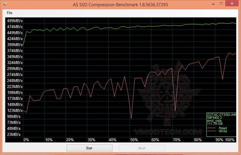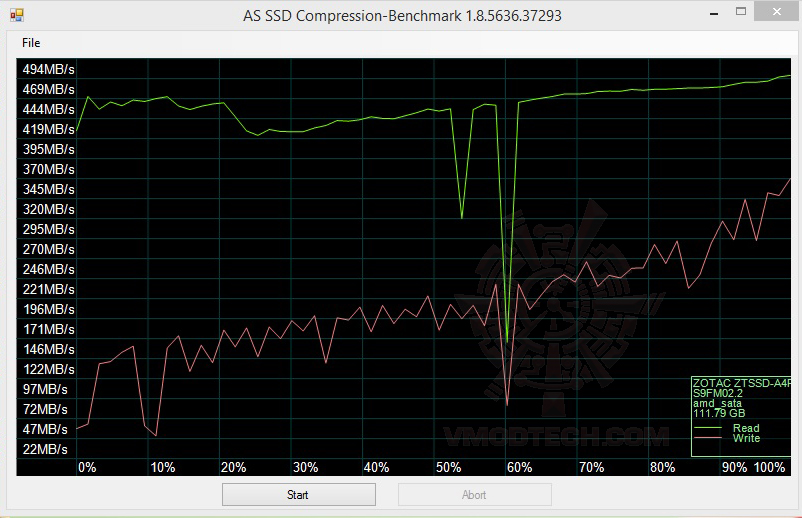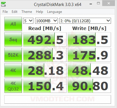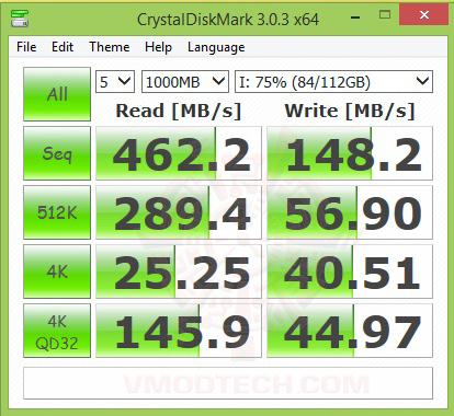 ในการทดสอบที่ SSD ไม่ได้จุข้ออะไรลงไปประสิทธิภาพของการอ่าน/เขียนจาก CDM นั้นถือว่าใช้ได้ครับ ผลงานการอ่านนั้นมีความเร็วอยู่ที่ 490เมกกาไบท์ต่อวินาทีส่วนเขียนก็อยู่ประมาณ 180 เมกต่อวินาทีครับก็ใกล้เคียงตรงตามสเปกที่ได้เคลมเอาไว้ครับ ที่ Read / Write 500 / 170 (MB/s) ส่วนในผลเทสเมื่อใส่ข้อมูลลงไป 75 เปอร์เซ็นแล้วนั้นประสิทธิภาพก็ตกลงมาบ้างครับแต่ไม่มากในผลเทส CrytalDiskmark ถือว่าใช้ได้เลยครับ