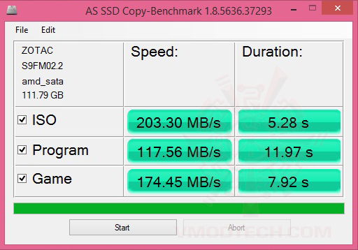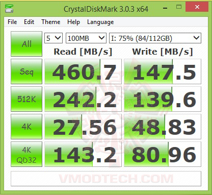 AS SSD Benchmark ก็แรงใช้ได้ครับ อัตราการอ่าน/เขียนก็อยู่ที่ 472MB/s ,187 B/s กว่าๆก็ใกล้เคียงกับสเปกครับถือได้ว่าการอ่านเขียนนั้นทำได้ตามมาตรฐานที่ได้เคลมกันเอาไว้ แต่เมื่อทดสอบในการเพิ่มข้อมูลความจุลงไปที่ 75เปอร์เซ็นแล้วนั้นอัตราการเขียนนั้นตกลงอย่างมากครับสำหรับชุดทดสอบ AS SSD Benchmark