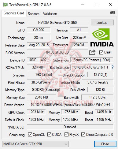 ZOTAC GeForce GTX 950 amp! Edition from GPUZ