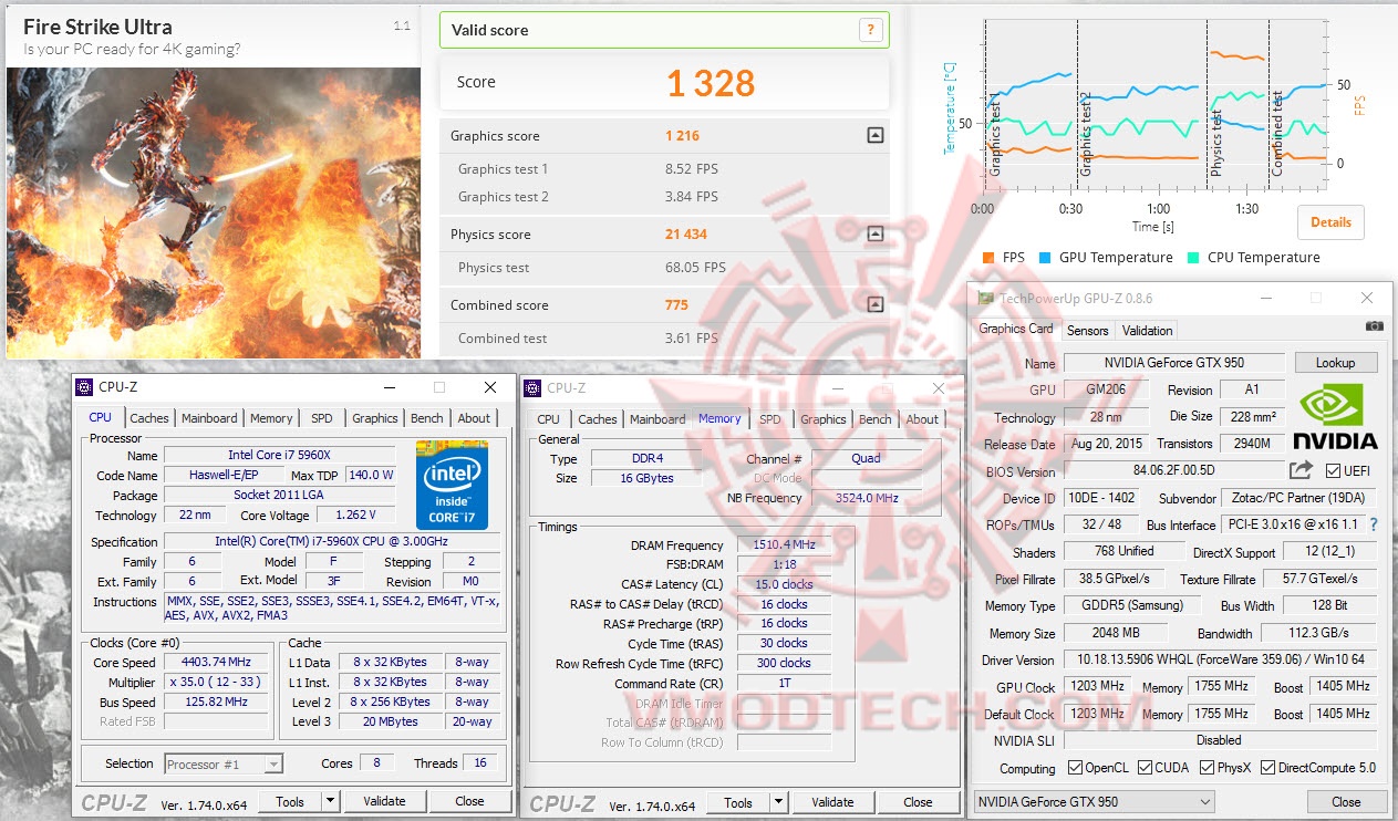 ZOTAC GeForce GTX 950 amp! Edition @ 1203/1755/1405 MHz Core/Mem/Boost