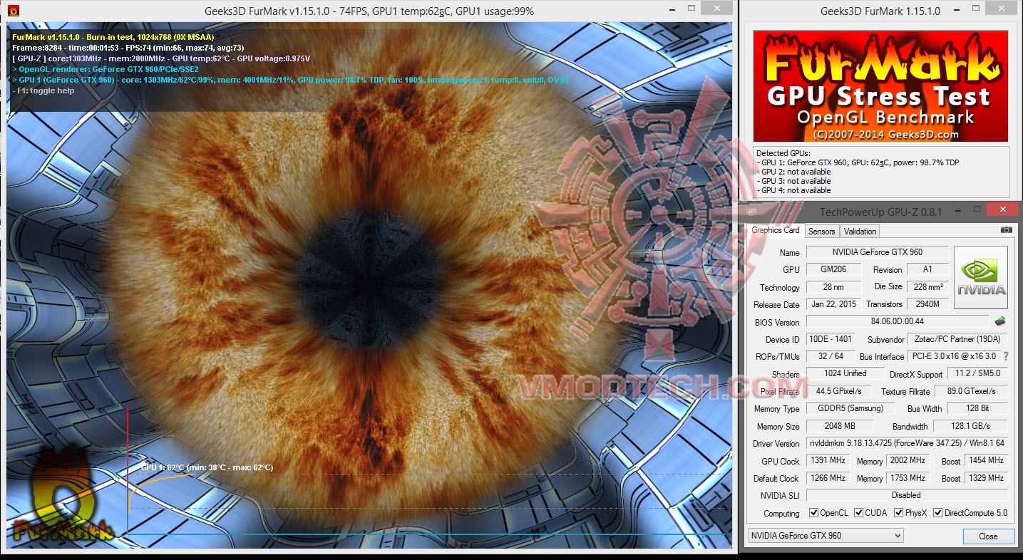 ความเร็วมาตรฐานของ ZOTAC GeForce GTX 960 AMP! Edition นั้นคือ 1266/1753/1329 MHz Core/Mem/Boost ซึ่งเป็นความเร็วที่ได้ทำการโอเวอร์คล๊อกขึ้นมานิดหน่อยจากความเร็วมาตรฐานของการ์ด Ref