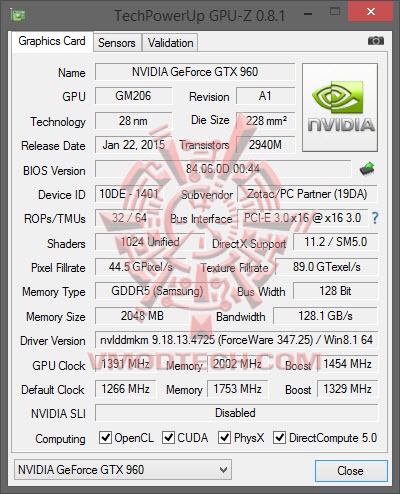 ZOTAC GeForce GTX 960 AMP! Edition from GPUZ