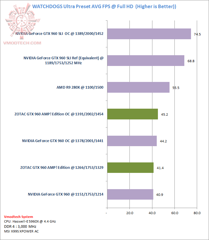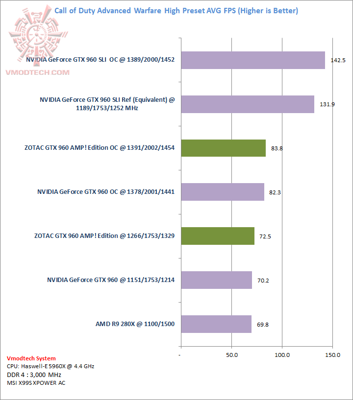 ZOTAC GeForce GTX 960 AMP! Edition Overclock @ 1391/2002/1454 MHz Core/Mem/Boost