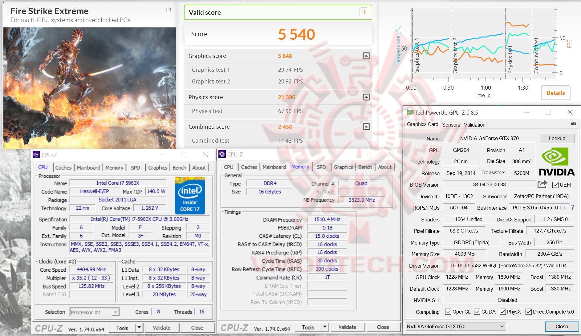 ZOTAC GeForce GTX 970 AMP! Extreme @ 1228/1800/1380 MHz Core/Mem/Boost