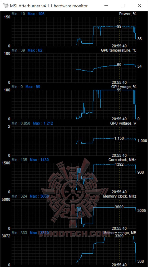 เนื่องจากตัวการ์ดนั้นได้ทำการโอเวอร์คล๊อกมาค่อนข้างสูงและสูงจนเกือบจะสุดเพดานความเร็วที่เราเคยทดสอบกราฟฟิกการ์ดที่ใช้ GPU ตัวเดียวกัน รวมถึงความสามารถของการ์ดที่ได้รับมานั้นโอเวอร์คล๊อกเพิ่มไปได้ไม่มาก ดังนั้นวันนี้ผมจึงทำการเทสเฉพาะ Default ของการ์ด ซึ่งก็เป็นค่าที่ได้รับการโอเวอร์คล๊อกมาแล้วเท่านั้น