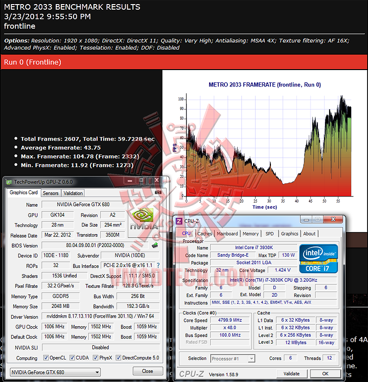 เพิ่มเติมสำหรับวันนี้คือค่าที่สามารถ Overclock ได้ได้อย่างสบายๆด้วย EVGA PrecisionX ครับที่ GPU Clock +147 และ Mem Offset +409 MHz โดยผมปรับ Power Target 132% และไฟที่ 1.12 ซึ่งเป็นค่าที่สามารถเทส Benchmark ผ่านทั้งชุดครับ ดังนั้นความสามารถในการ Overclock ของ ZOTAC NVIDIA GTX680 นั้นก็ไม่ได้หมายความว่าหมดแค่นี้ ต่างที่ต่างชุดทดสอบและเมื่อเวลาผ่านไปอีกซักพักน่าจะสามารถทำการ Overclock ให้กับ GTX680 เพิ่มได้อีกแน่นอน