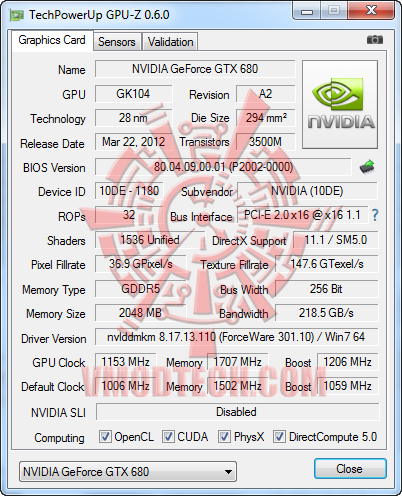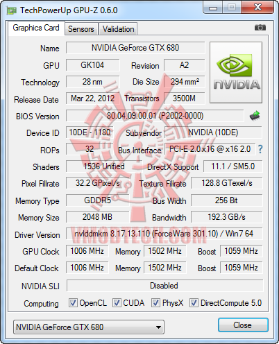 .ZOTAC NVIDIA GTX680 from GPUZ