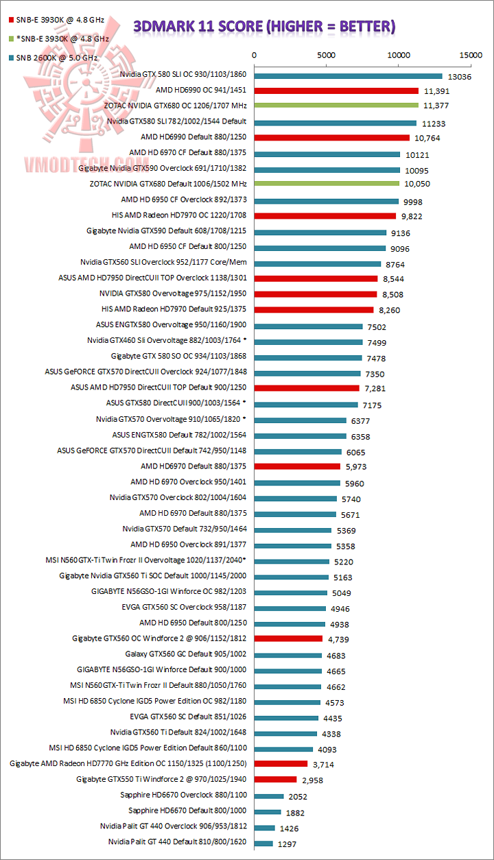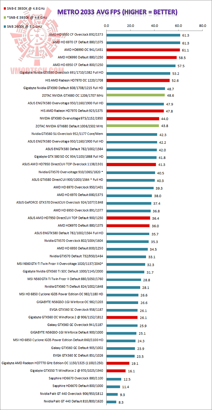ที่ Default นั้น .ZOTAC NVIDIA GTX680 ก็สามารถเบียดไปเบียดกับการ์ดสอง GPU ของอีกค่ายได้สบายๆเลย
