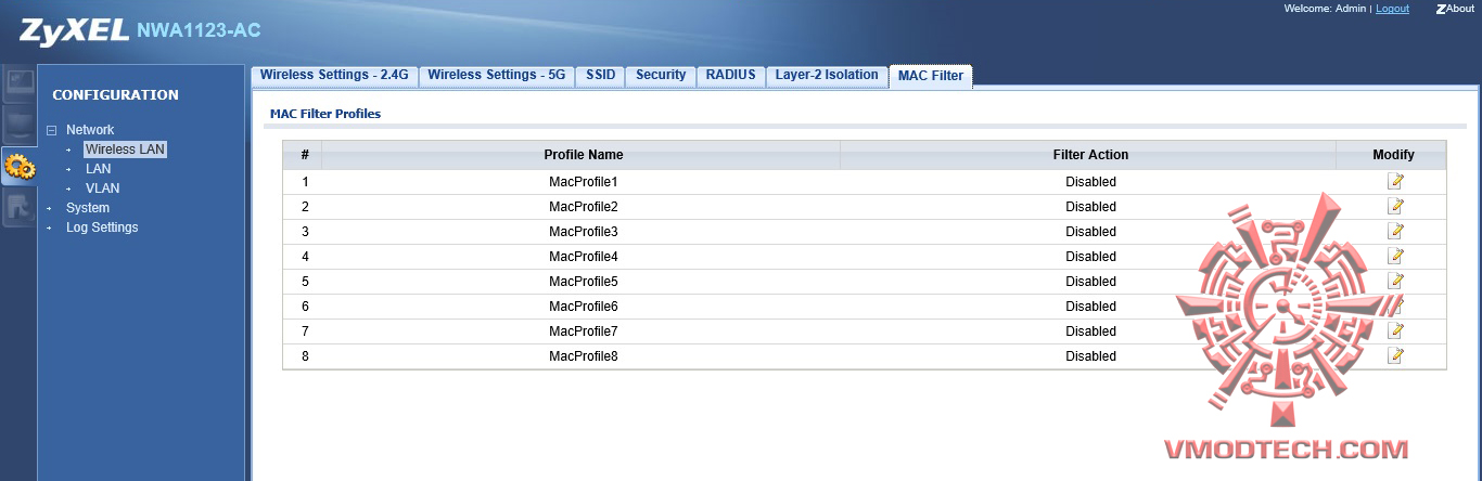 Mac Filterมี 8 โปรไฟล์ในการกรอง 1โปรไฟล์แยกเป็น 32ชุด