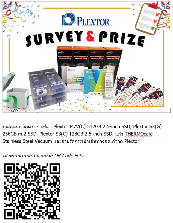 ร่วมตอบแบบสอบถามและลุ้นรางวัลจาก PLEXTOR