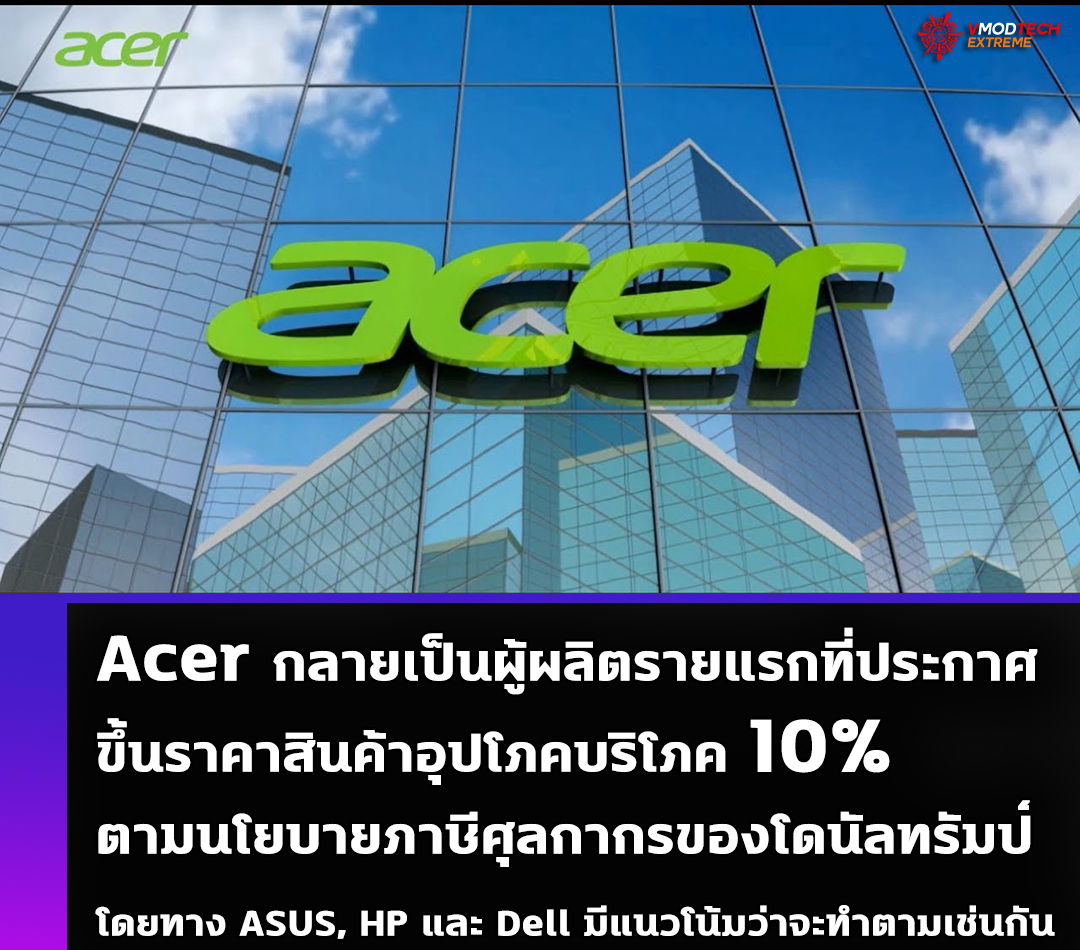Acer กลายเป็นผู้ผลิตรายแรกที่ประกาศขึ้นราคาสินค้าอุปโภคบริโภค 10% ท่ามกลางนโยบายภาษีศุลกากรของทรัมป์ โดยทาง ASUS, HP และ Dell มีแนวโน้มว่าจะทำตามเช่นกัน