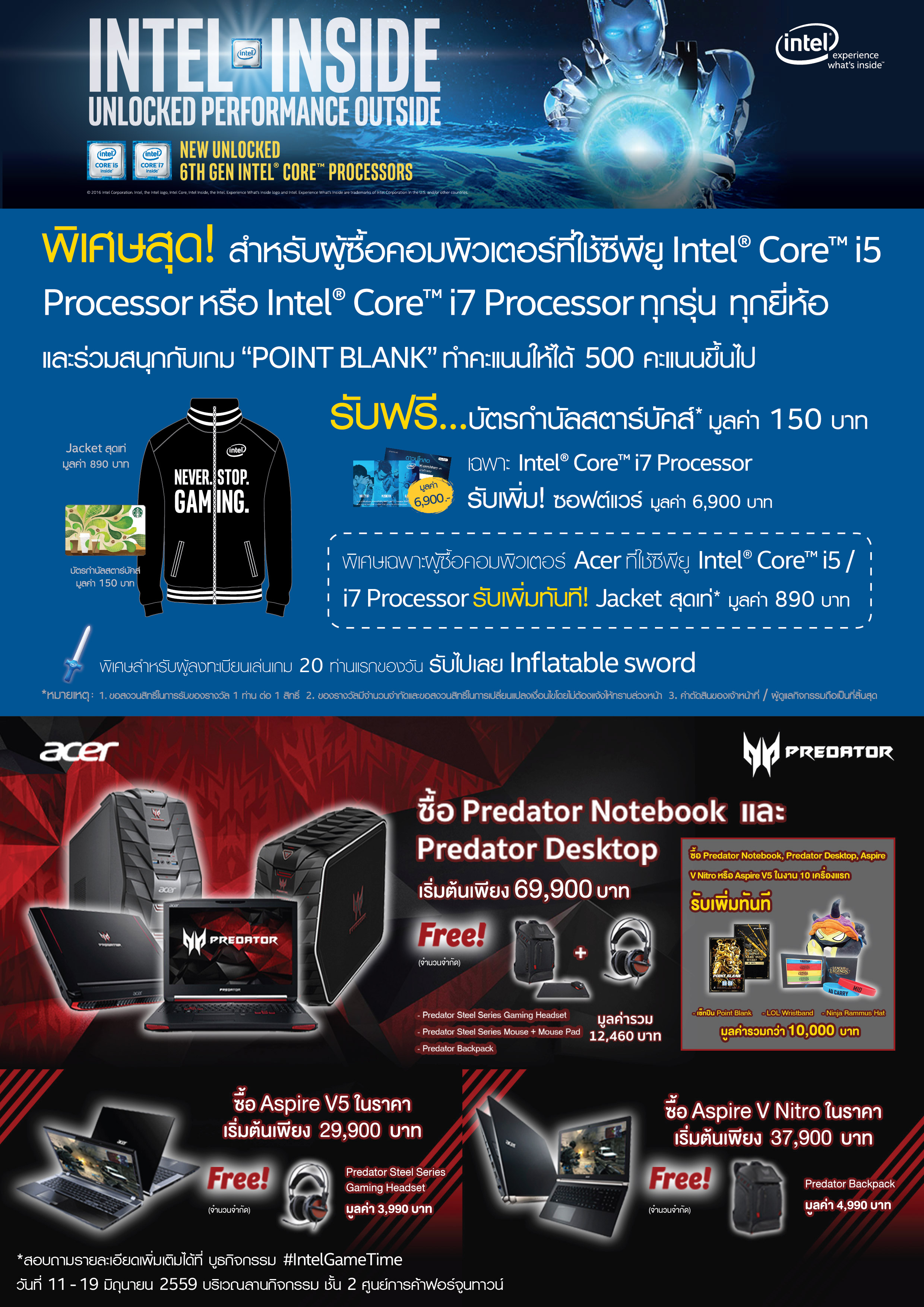 Acer ร่วมกับ Intel จัดงาน Gaming Roadshow ที่ IT Mall Fortune 11 - 19 มิถุนายน 2559