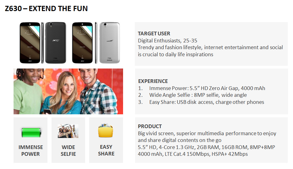 ACER เปิดตัว Acer Liquid Z330, Acer Liquid Z530, Acer Liquid Z630 พร้อมจัดจำหน่ายในงาน Thailand Mobile Expo 2015 วันที่ 1 - 4 ตุลาคม 2558