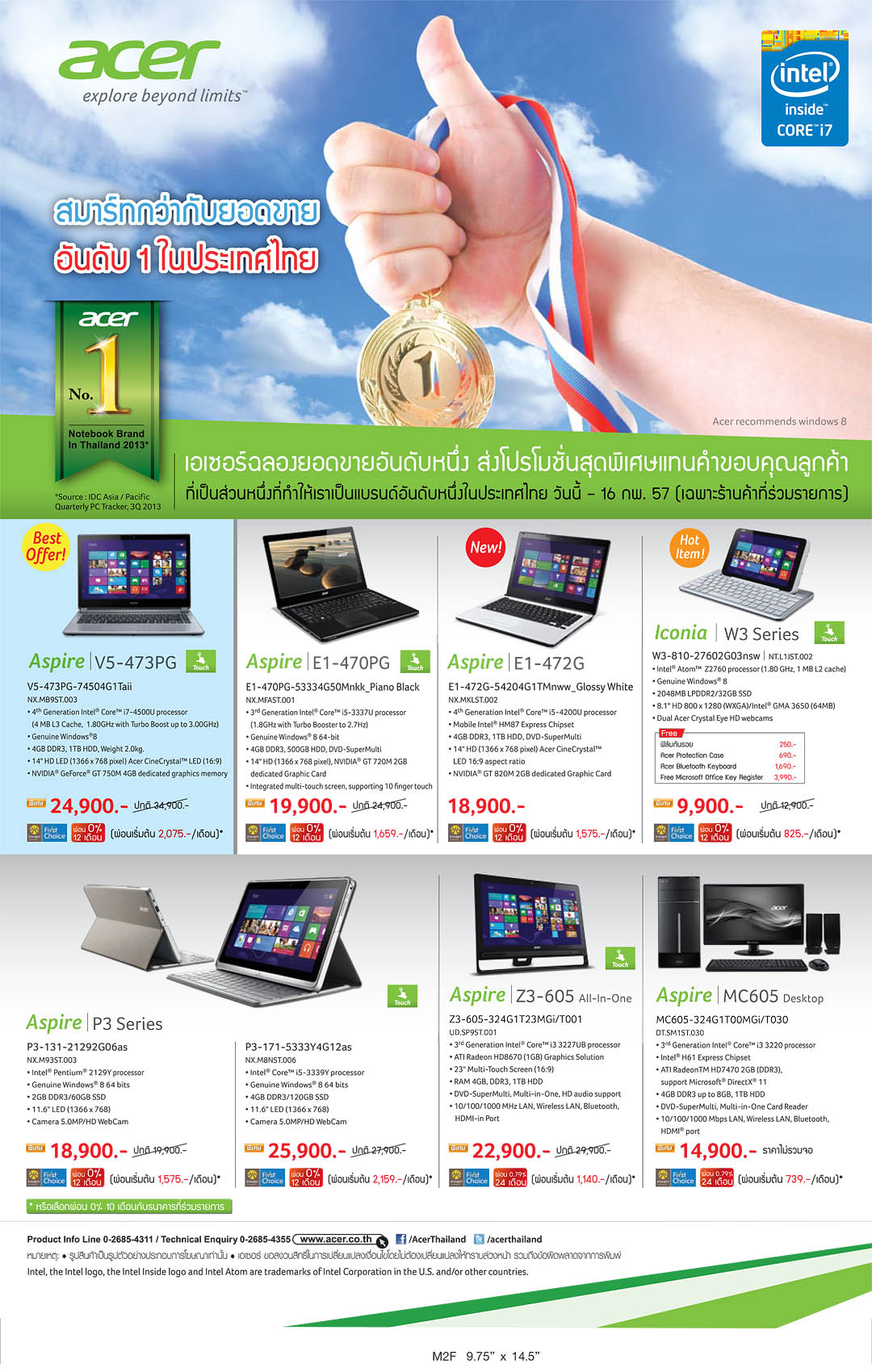 Acer ฉลองยอดขายอันดับ 1 ส่งโปรโมชั่นสุดพิเศษแทนคำขอบคุณลูกค้าทุกท่าน