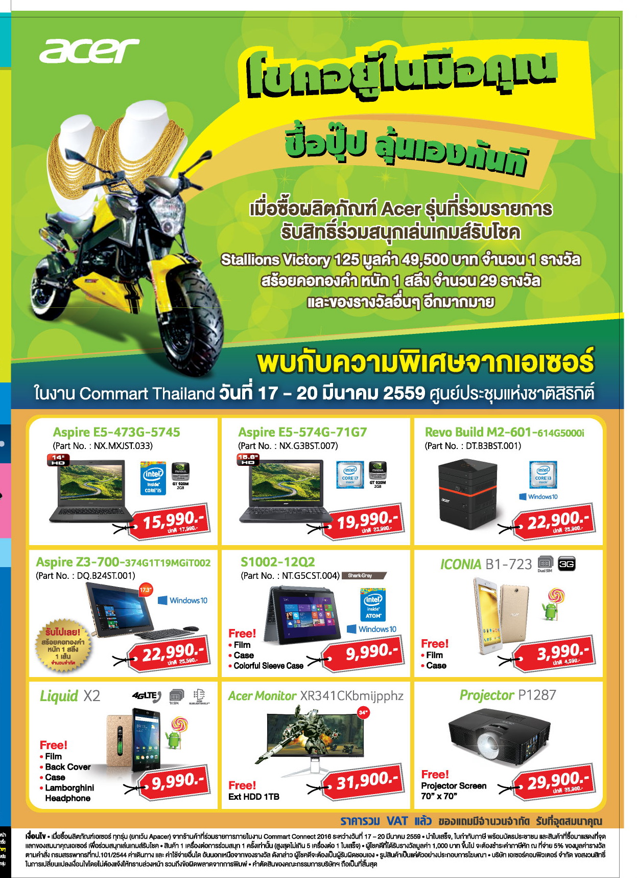 Acer Promotion Commart 2016 พบกับความพิเศษจากเอเซอร์ ในงาน Commart Thailand วันที่ 17-20 มีนาคม 2559 ศูนย์ประชุมแห่งชาติสิริกิติ์