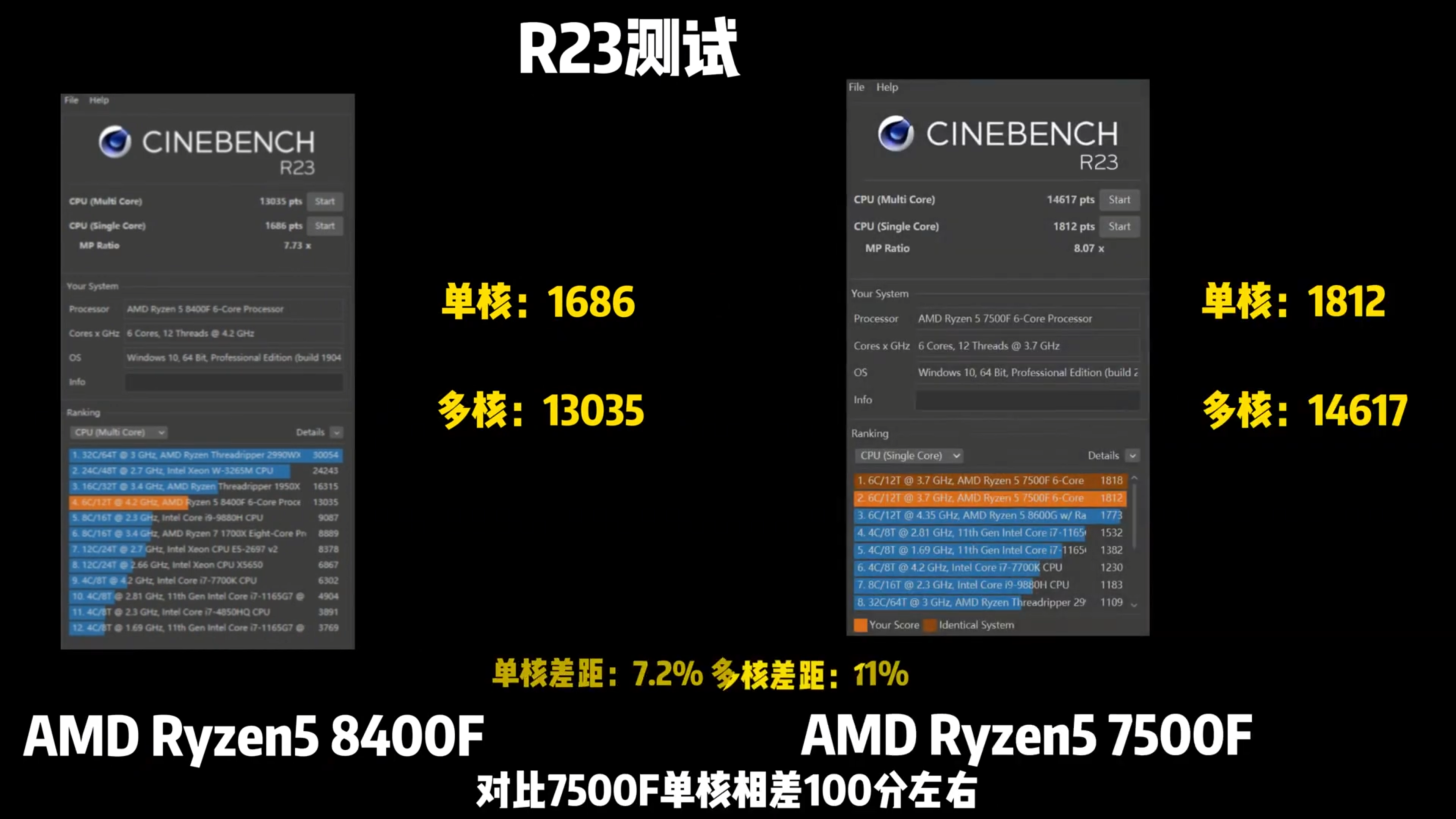 หลุดผลทดสอบ AMD Ryzen 7 8700F และ Ryzen 5 8400F รุ่นที่ตัดกราฟฟิก APUs ออกมีขายเฉพาะในจีนผลทดสอบประสิทธิภาพใกล้เคียงกัน