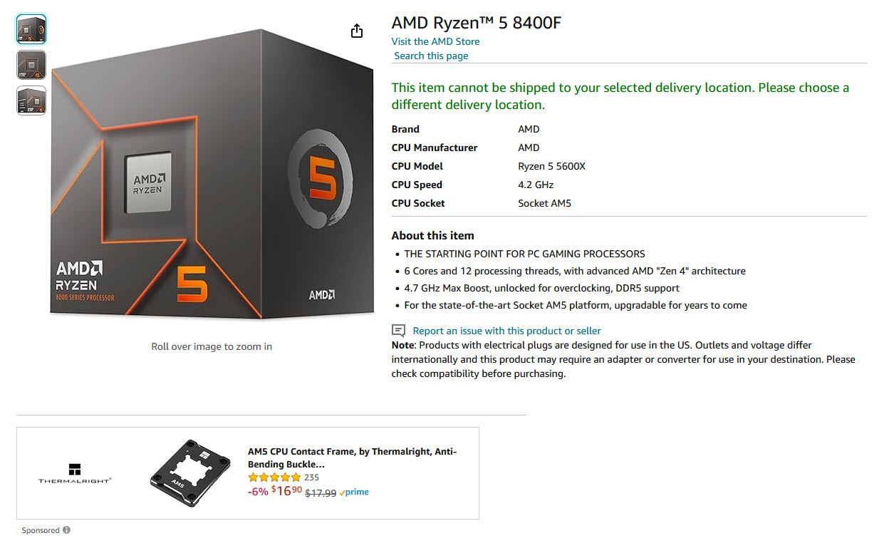 AMD วางจำหน่ายซีพียู AMD Ryzen 7 8700F ในราคา $299 และ Ryzen 5 8400F ในราคา $189 ในสหรัฐอเมริกา