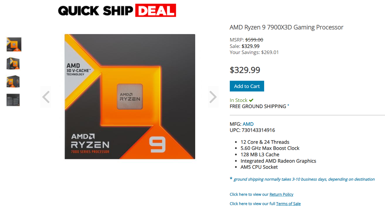 AMD Ryzen 9 7900X3D ลดราคาลงเหลือ $329 จากเดิมตอนเปิดตัว $599 คาดลดราคาเพื่อรับซีพียูใหม่ Ryzen 9000ซีรี่ย์ ZEN5