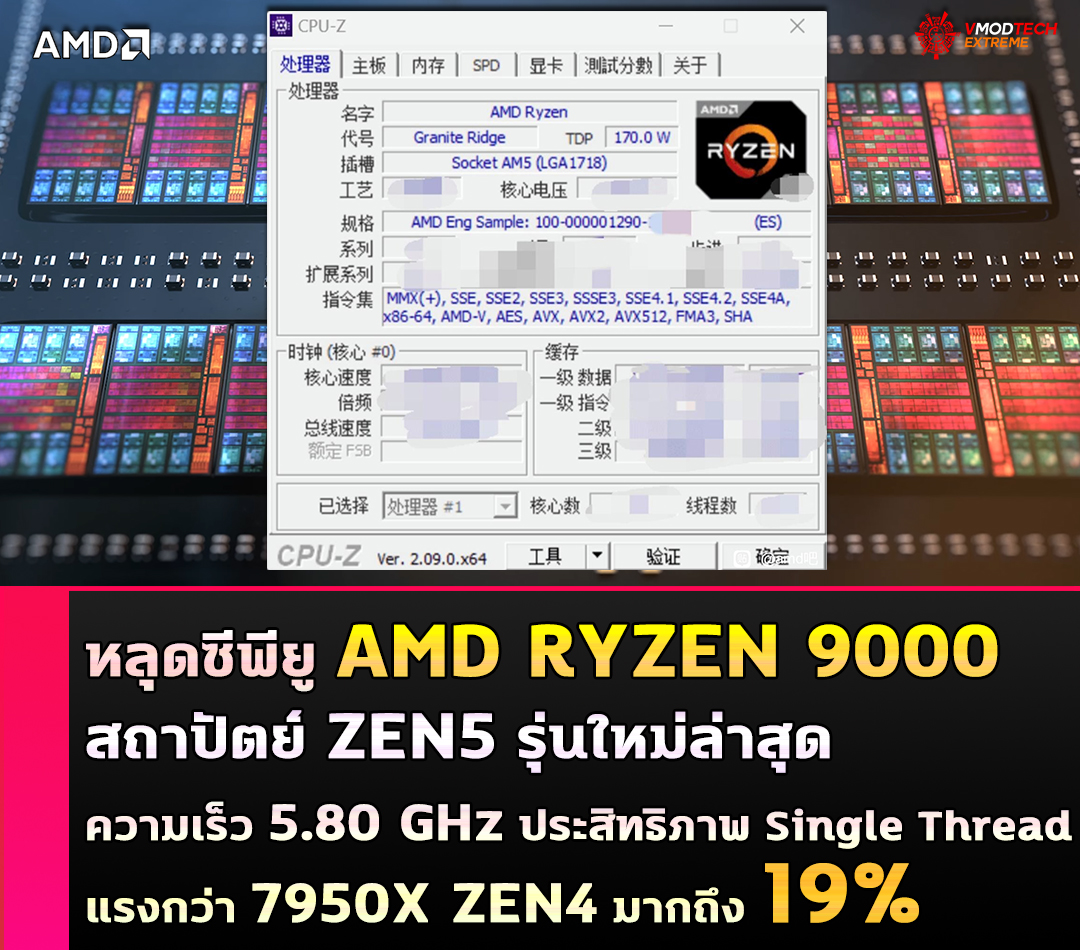 หลุดซีพียู AMD RYZEN 9000 สถาปัตย์ ZEN5 รุ่นใหม่ล่าสุดความเร็ว 5.80 GHz ประสิทธิภาพ Single Thread แรงกว่า 7950X ZEN4 มากถึง 19%