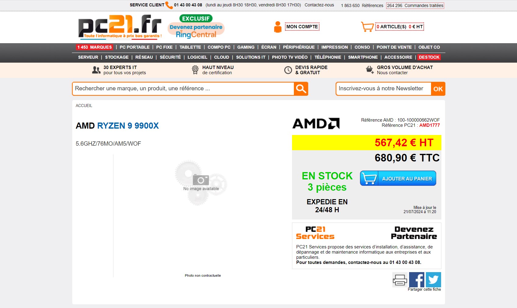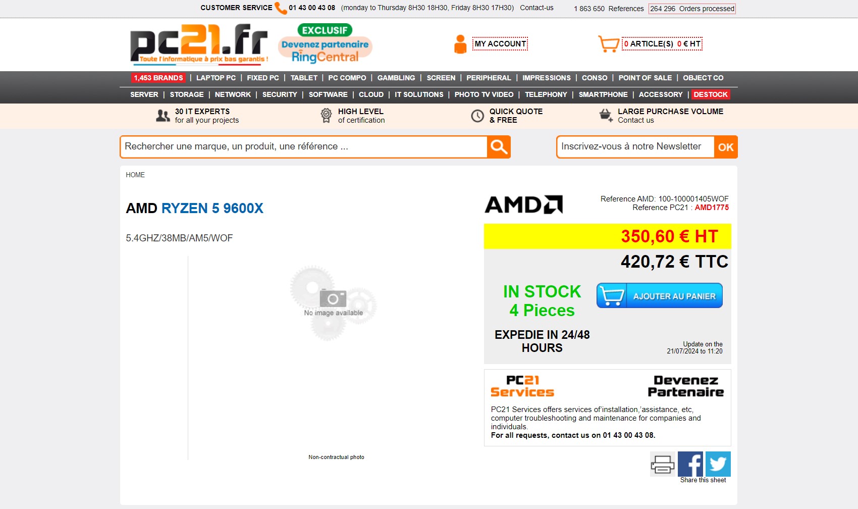 เผยราคาซีพียู AMD “Zen 5” รุ่นใหม่ Ryzen 5 9600X อยู่ที่ที่ 350.60 ยูโร, Ryzen 7 9700X อยู่ที่ที่ 454.13 ยูโร, Ryzen 9 9900X ที่ 567.42 ยูโร