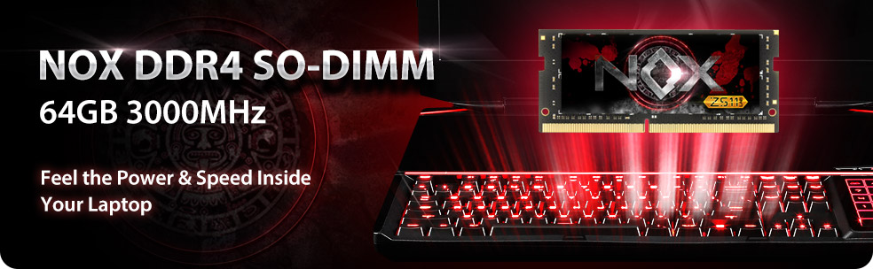 NOX DDR4 SO-DIMM คือ SO-DIMM memory module หนึ่งเดียวในโลกที่มีความจุสูงสุดต่อแท่งในปัจจุบัน โดยมีความจุ 64GB(16GB*4) NOX เพิ่มประสิทธิภาพการในการเปิด applications ใช้งาน เล่นเกมส์ที่ใช้ทรัพยากร graphic สูง หรือการใช้งาน software อื่นๆ หากคุณคือ gamer ระดับ hardcore NOX สามารถช่วยให้คุณเล่นเกมส์ได้อย่างไหลลื่นเต็มประสิทธิภาพ เต็มอารมณ์