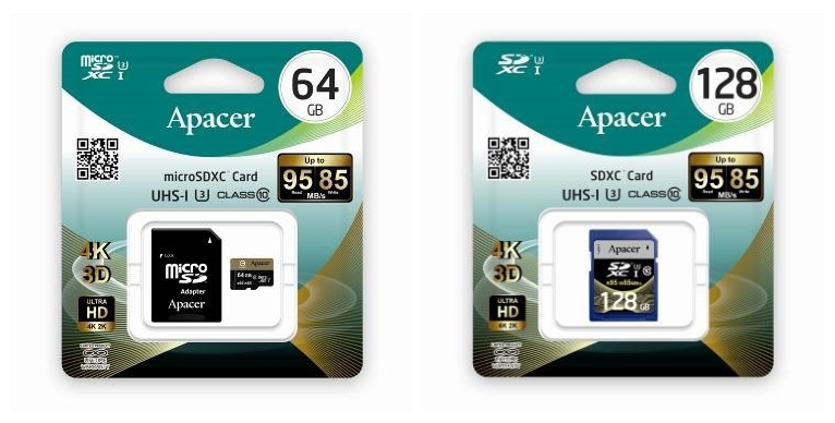 Apacer เป็นผู้นำในการเปิดตัว microSDHC/SDXC UHS-I U3 64GB ซึ่งสามารถอ่าน/เขียนได้สูงสุด 95/85 MB/sec. ขยายพื้นที่จัดเก็บเก็บข้อมูลของ สมาร์ทโฟน แท็บเล็ต PC และ อุปกรณ์พกพาต่างๆ ผู้ใช้งานจะได้รับประสบการณ์ในการใช้ที่ลื่น ในทุกๆงาน เช่นการเล่น Facebook ถ่ายภาพ video และรับชมรูปภาพ เล่น internet ใช้แผนที่ GPS หรือ เล่นเกมส์ โดยเฉพาะอย่างสำหรับผู้ที่ใช้งาน App และ gameต่างๆ หรือรับชมวีดีโอ Full HD ที่ต้องการความจุสูง และความสามารถในการถ่ายโอนข้อมูลที่สูง