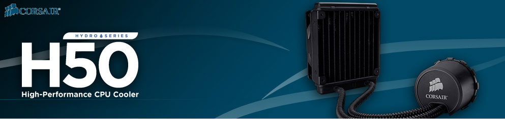 Corsair Hydro Series TM H50 CPU Cooler เป็นชุดระบายความร้อนของซีพียู ด้วยระบบน้ำ ช่วยทำ ให้อุณภูมิของเครื่องคอมพิวเตอร์ลดน้อยลง มีขนาดเล็กกระทัดรัด ง่ายต่อการติดตั้ง ไม่มีเสียงดัง ชุดระบายความร้อนชุดนี้เป็นระบบ ปิด 100% เพราะ ฉะนั้นจึงไม่ต้องกังวลเรื่องน้ำรั่ว หรือเรื่องการเติมน้ำยา(Coolant) เหมาะกับปฏิบัติการโอเวอร์คล๊อกที่สูงกว่า ด้วยระบบที่ไม่ซับซ้อนของระบบการทำความเย็นแบบดังเดิม ทั้งยัง Support กับ Intel LGA775, Intel LGA1366, AMD socket AM2 and AMD socket AM3 motherboards.