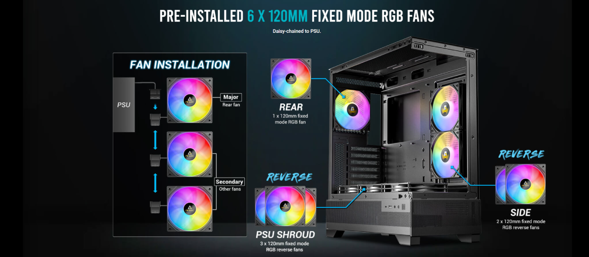 Pre-Installed 6 x 120mm Fixed Mode RGB Fans
