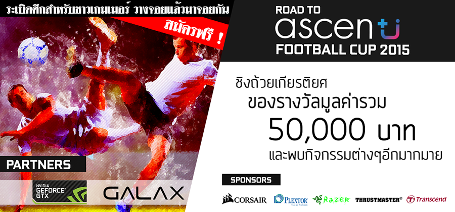 ระเบิดศึกสำหรับเกมเมอร์ ASCENTI FOOTBALL CUP 2015 สมัครฟรี !! ห้ามด้วยประการทั้งปวง