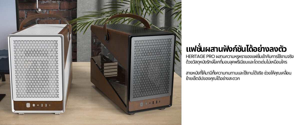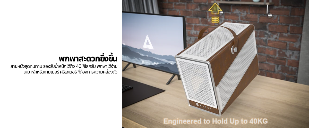 พกพาสะดวก แข็งแรง พร้อมใช้งานได้ทุกที่ หนึ่งในไฮไลต์ของ Heritage PRO คือ สายหิ้วหนัง ที่สามารถรับน้ำหนักได้ถึง 40 กิโลกรัม ไม่ใช่เพียงแค่สวย แต่ยังใช้งานได้จริง ทำให้คุณสามารถยกเครื่องไปทำงานนอกสถานที่ได้ เคลื่อนย้ายหรือพาไปจัดงานโชว์ได้อย่างสะดวก ปรับโฉมผู้ให้เป็นเกมเมอร์ ครีเอเตอร์ ได้ทุกที่ทุกเวลา