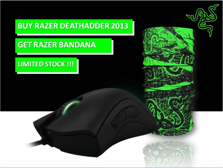 มาอัพเกรดอาวุธของคุณให้เร็วกว่า มีประสิทธิภาพที่ดีกว่าและแม่นยำกว่าด้วย RAZER Deathadder 2013 Edition ราคา 1890 บาท แถมฟรีผ้าพันคอคลายหนาว RAZER Bandana มูลค่า 490 บาท !