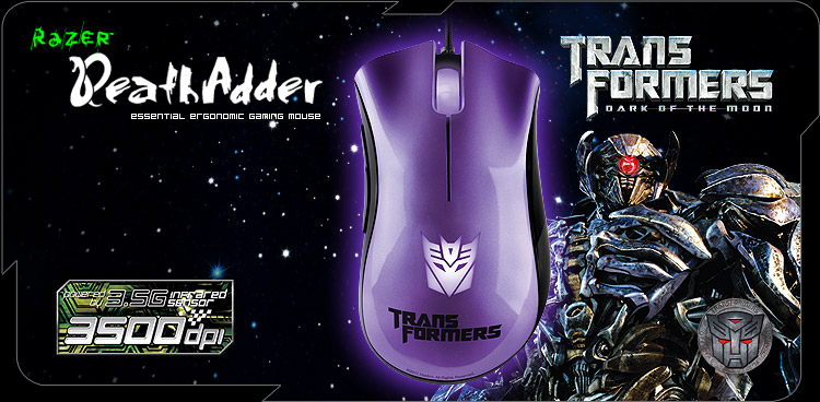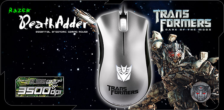 บุกไทยแล้ว!! เหล่าหุ่นยนต์ transformer กับสงครามมืดระหว่าง Autobots และ Decepticons เตรียมความพร้อมให้ดีคุณอาจเป็นเหยื่อของสงครามในครั้งนี้กับ Razer DeathAdder Transformer 3 Collector’s Edition มี 4 รุ่นให้เลือกสรร สีแดงเปลวเพลิงของ Optimus Prime , สีเหลืองร่าเริงสดใสของ Bumblebee , สีม่วงเข้มของ Shockwave และสีเงินชั่วร้ายของ Megatron