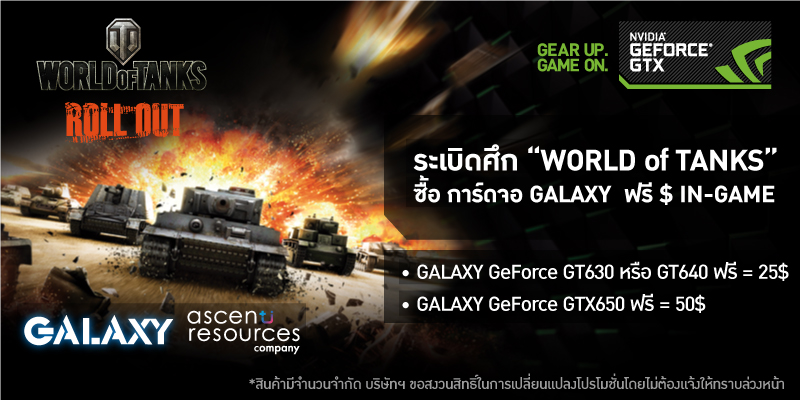 Ascenti Resources ระเบิดศึก”World of Tanks” เพียงซื้อการ์ดจอ GALAXY รับทันที Item มูลค่า 25 $ - 50 $