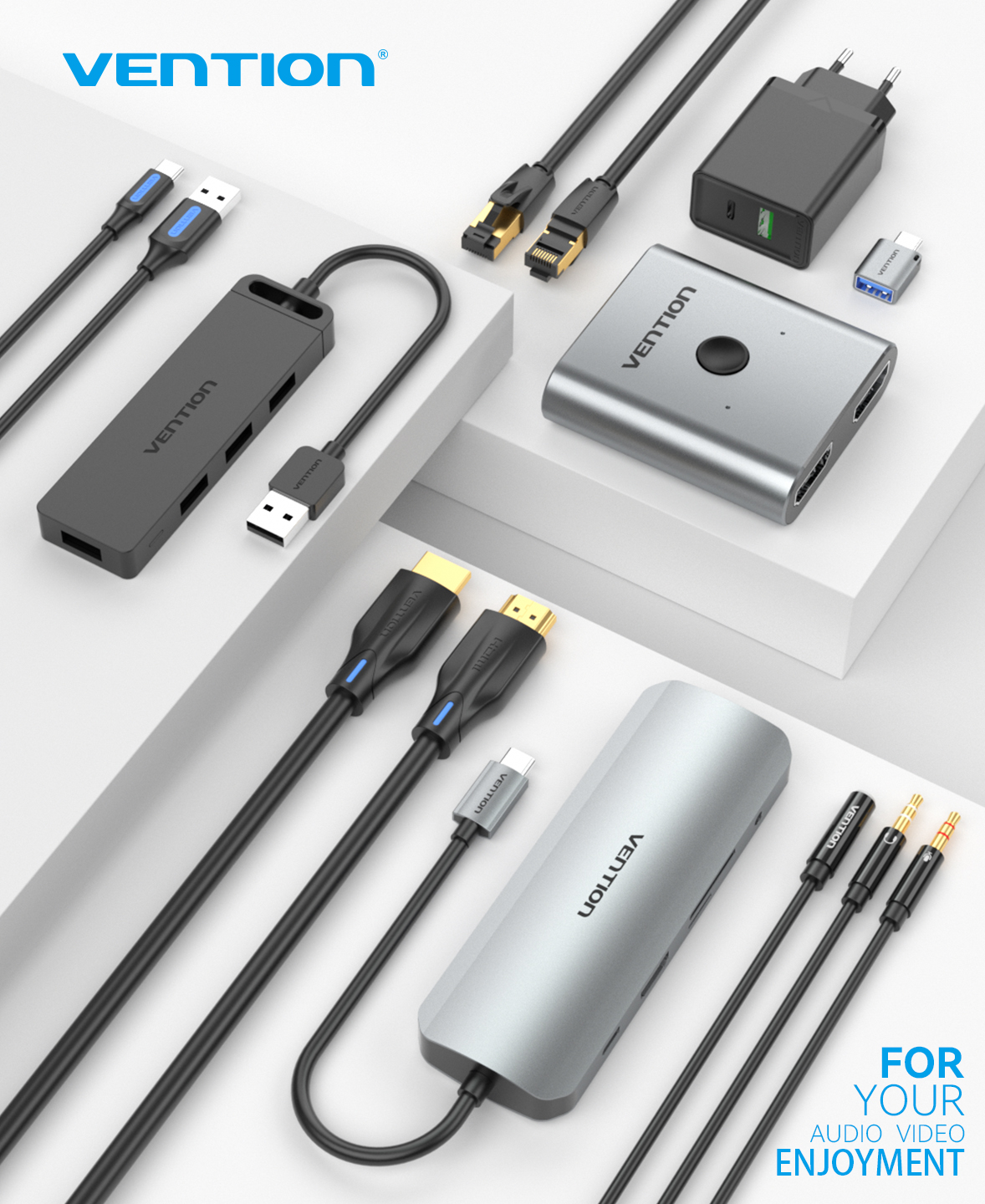 Vention มีสินค้า Accessories ที่รองรับการใช้งานทุกกลุ่ม ทำงานออฟฟิศ เล่นเกม สตรีมเมอร์ กล้องถ่ายภาพและวิดีโอ สินค้ามีให้เลือกใช้ได้ตามต้องการตอบโจทย์การใช้งานที่โต๊ะทำงานและการทำงานนอกสถานที่ เชื่อมต่อได้ทั้งคอมพิวเตอร์ โน๊ตบุ๊ค โทรศัพท์มือถือ ว่าจะเป็น Docking Station / USB Hub / USB Cable / Charger / Display Cable / Network Cable และอื่นๆ อีกมากมาย