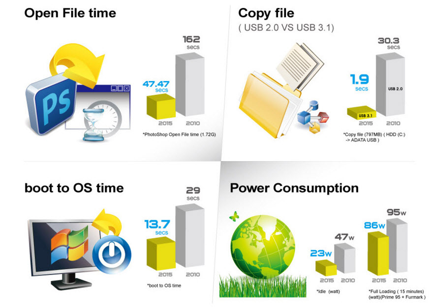 เทคโนโลยีเป็นสิ่งที่รวดเร็วกว่าที่คิด ถ้าคอมพิวเตอร์ของคุณมีการใช้งานนานกว่า 5 ปีขึ้นไป สิ่งเหล่านี้คือประสิทธิภาพที่คุณจะได้รับ เมื่อเทียบกับการที่คุณอัพเกรดฮาร์ดแวร์ใหม่ในปัจจุบัน