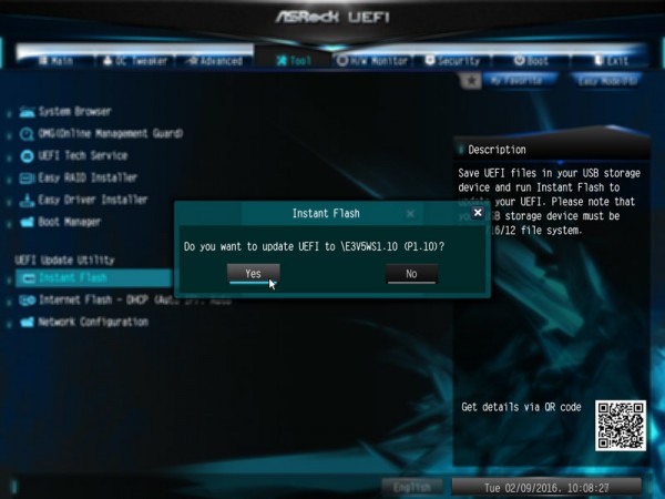 ระบบจะให้คุณยืนยันในการอัพเดต BIOS UEFI update โดยจะเปลี่ยนจากเวอร์ชั่น P1.00 ไปเป็น P1.10 และเมื่อเสร็จสิ้น ระบบจะทำการ Restart เป็นอันจบกระบวนการอัพเดต