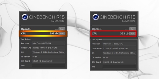 ภาพบน :ASRockDeskMini ทำคะแนน cb CPU บน Cinebench R15 ได้มากถึง 392 แต้ม บนซีพียู Intel Core i3-6100 ทิ้งห่างระบบอื่นอย่างขาดลอย แม้ว่าจะเทียบกับซีพียู Core i7-6500U ก็ตาม