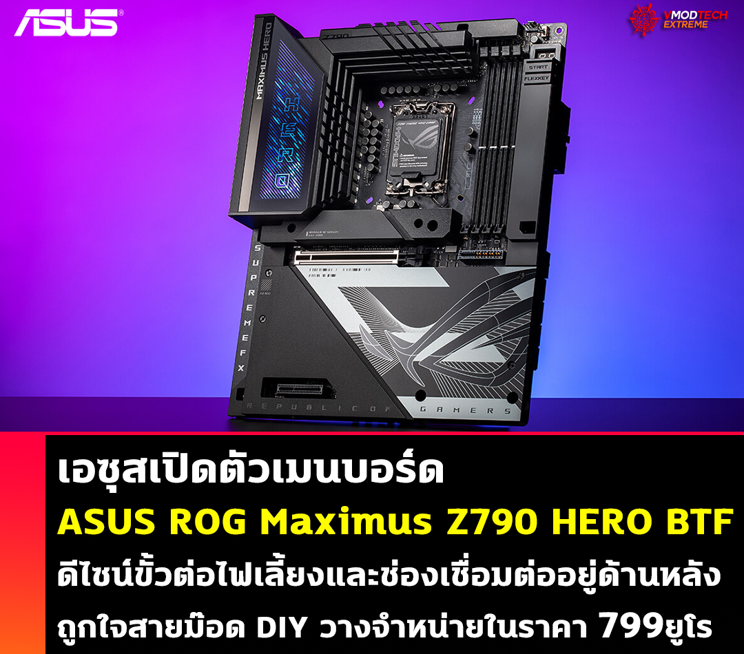 เอซุสเปิดตัวเมนบอร์ด ASUS ROG Maximus Z790 HERO BTF มาพร้อมขั้วต่อไฟเลี้ยงและช่องเชื่อมต่อที่อยู่ด้านหลังบอร์ดทั้งหมดขายในราคา 799ยูโร